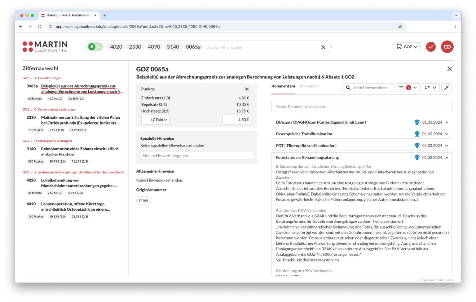 Effiziente Prüfung zahnärztlicher Abrechnungen mit Martin Gebühreninfo GOZ